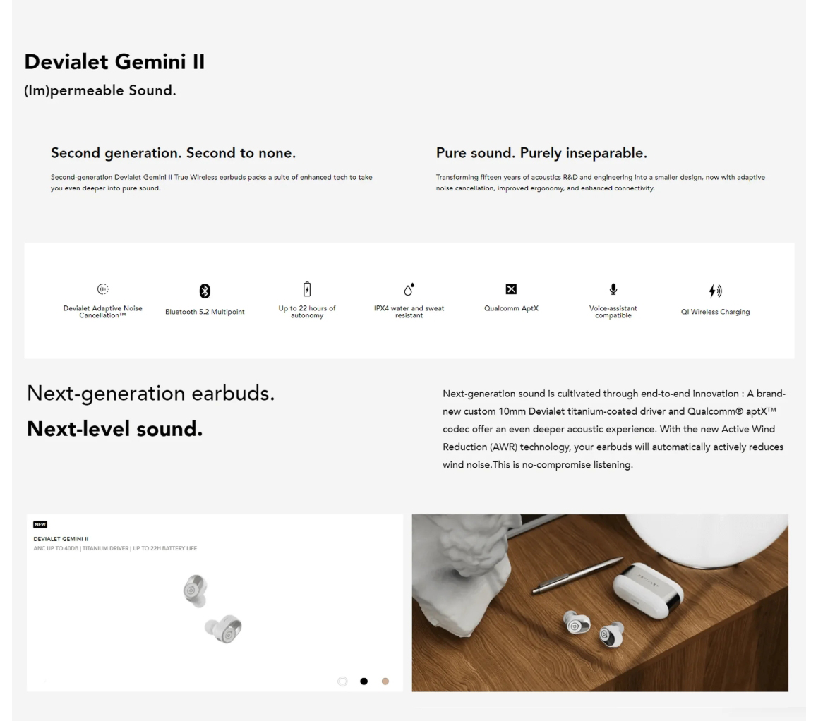 พบกับสินค้าคุณภาพ 2025 Devialet Gemini II Devialet Adaptive Noise Cancellationที่มาพร้อมกับเทคโนโลยีตัดเสียงรบกวน Devialet Adaptive Noise Cancallation™ Order Now